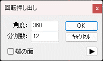 元の図形を何度回転させて押し出すかを指定します。360度より大きな値も指定できます。