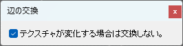 ここにチェックが入っている場合、クリックした辺を含む二つの三角形のテクスチャがつながっていなければ、辺の交換は行われません。チェックが入っていない場合は、辺の交換が行われ、テクスチャが削除されます。