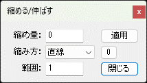 選択されている図形を、指定の方向に縮めたり伸ばしたりします。左ドラッグにより、図形を縮める量が変化し、右ドラッグにより、図形の変形する範囲が変化します。