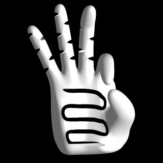手の形をした細分割曲面に、ジグザグに切れ目を入れました。