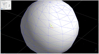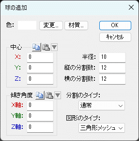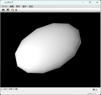図形の縁が折れ線になっていますが、これは球を追加したときに分割数が少なかったためです。球を追加するときに、”分割数”を増やせば、より滑らかになります。(この図形は曲面に見えますが、たくさんの三角形で表されています。)