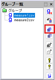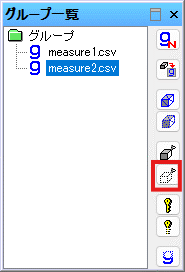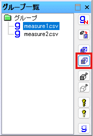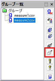 グループ一覧で、"measure1.csv"を選択し、上から3番目のボタンを押します。measure1.csvに含まれていた点群が選択されます。