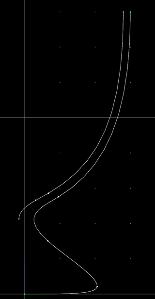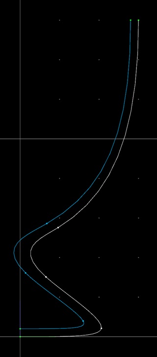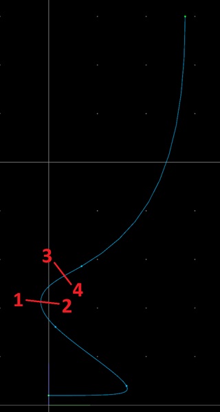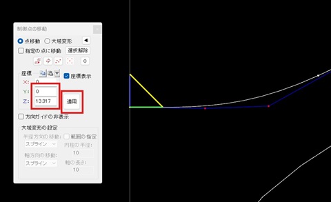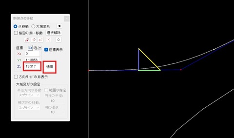 19. 次に内側の曲線の下から2番目の制御点をクリックして選択してください。そしてウインドウのZ座標値にクリップボードから数字を張り付けて”適用”ボタンを押して下さい。