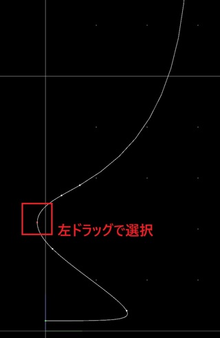 画面でマウスを左ドラッグして曲線の区切りを選択します。