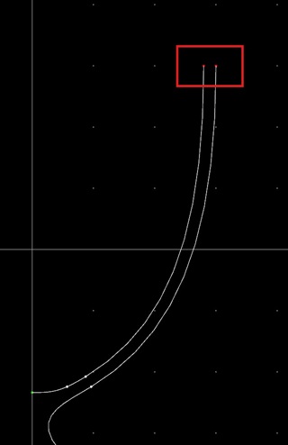 一点目を左クリックし、二点目を左ダブルクリックして下さい。曲線に区切りが入り、その曲線の上に小さな点が描かれます。