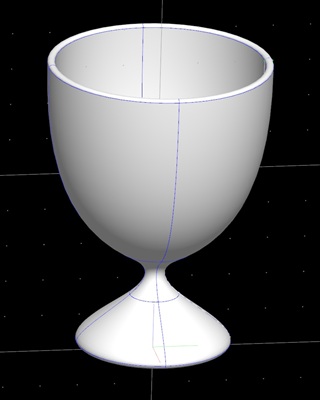 このチュートリアルでは、曲線を回転押し出ししてコップの形の曲面を作成します。