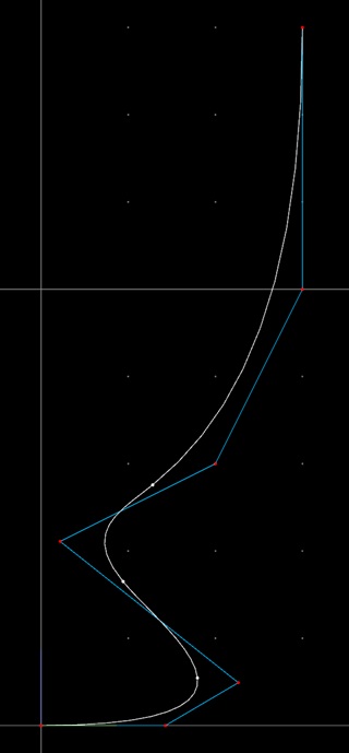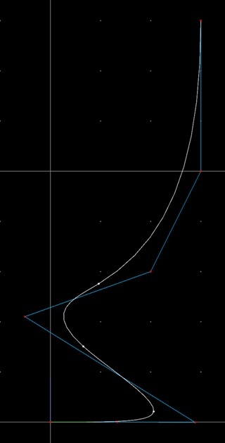 曲線の端点の制御点のみ動かすと、との隣の制御点も連動して動きますが、これは曲線の端の傾きを保つための動作です。端点を動かしてから、その隣を動かして位置を調整してください。