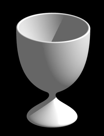 1点目を左クリックし、2点目をダブルクリックする(または2点目をクリックしてから、左上のウインドウのOKボタンを押す)と、曲線が押し出されてコップの形になります。視点を変えて眺めてみて下さい。