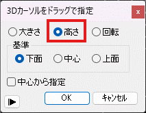ボタンで表示されるウインドウでも回転できます。)、縦方向の大きさを確認しながら行いましょう。