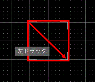 画面でマウスを左ドラッグしましょう。大きさは、スケッチ面の格子で2×2位にしましょう。