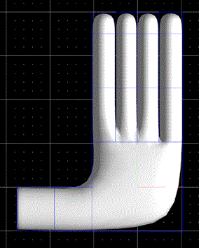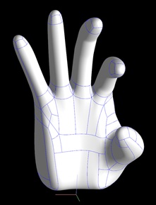 これで手の基本形状ができました。後は「図形編集」→「制御点移動」メニューや、「細分割曲面」メニュー内のコマンドを用いてひたすら形を整えます。