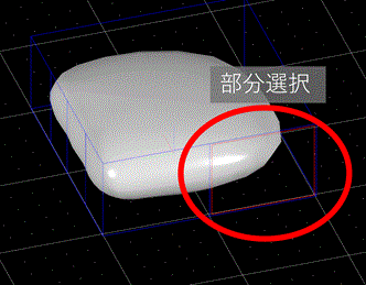 図形を斜めから眺めて、図形の下の部分を左クリックで部分選択します。部分選択された面が赤くなります。この部分が親指の元となります。