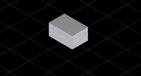 直方体の上の面を構成している2つの三角形を左クリックします。(SHIFTキーを押しながらクリックすることで、2つ目の三角形も部分選択できます。その場におけるキーやマウス操作は、本ソフトウェアの一番下にメッセージとして表示されます。また、この操作では、直方体の形をした”三角形メッシュ”という種類の図形の一部分を”部分選択”しています。)