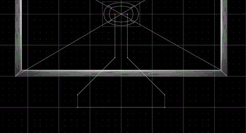 キーボードのTキーを押し、空間を真上から眺めます。(Tキーは、「操作」→「視点」→「平面」メニューのショートカットキーです。)