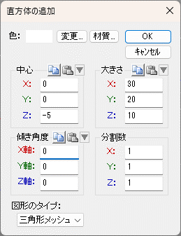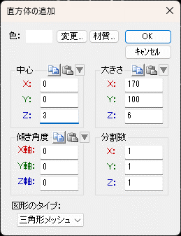 ”直方体の追加”ウインドウで、数値をきりの良い値に修正します。例えば下の値に設定します。