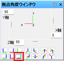 ボタンを押し、視点角度ウインドウを表示します。視点角度ウインドウの一番下の左から3番目のボタンを押します。