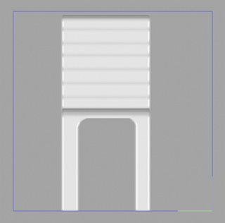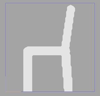 ボリューム上でマウスを左ドラッグし、椅子を横から眺めた形を描きます。「ペン先」が「貫通」の場合は、マウスに合わせてボリュームを奥まで貫通するように塗られます。(「正面」は、椅子の正面というよりも、形状で一番特徴的なシルエットを描くのに使います。)