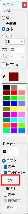 葉を描いていくため、左のウインドウの「リセット」ボタンを押し、描画用の平面を初期状態に戻します。