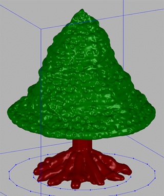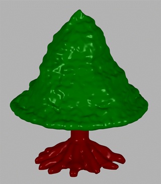 左のウインドウの「描画表面」で「形状上」にチェックを入れることで、形そのものの上に描画することができます。「半径」に5を入れ、形状上に細かな凹凸を付けます。また、根の隙間も埋めていきます。そして、「ペン先」を「滑らかに」にし、太さを20にして形状上をなぞると、その部分が滑らかになります。