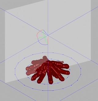 平面のコントローラーの、赤い円弧をドラッグして平面を回転させながら、同じように根を描いていきます。